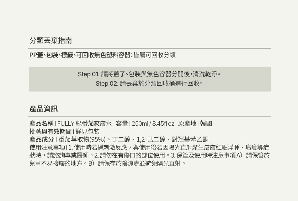[23%OFF] FULLY 綠番茄爽膚水 250ml